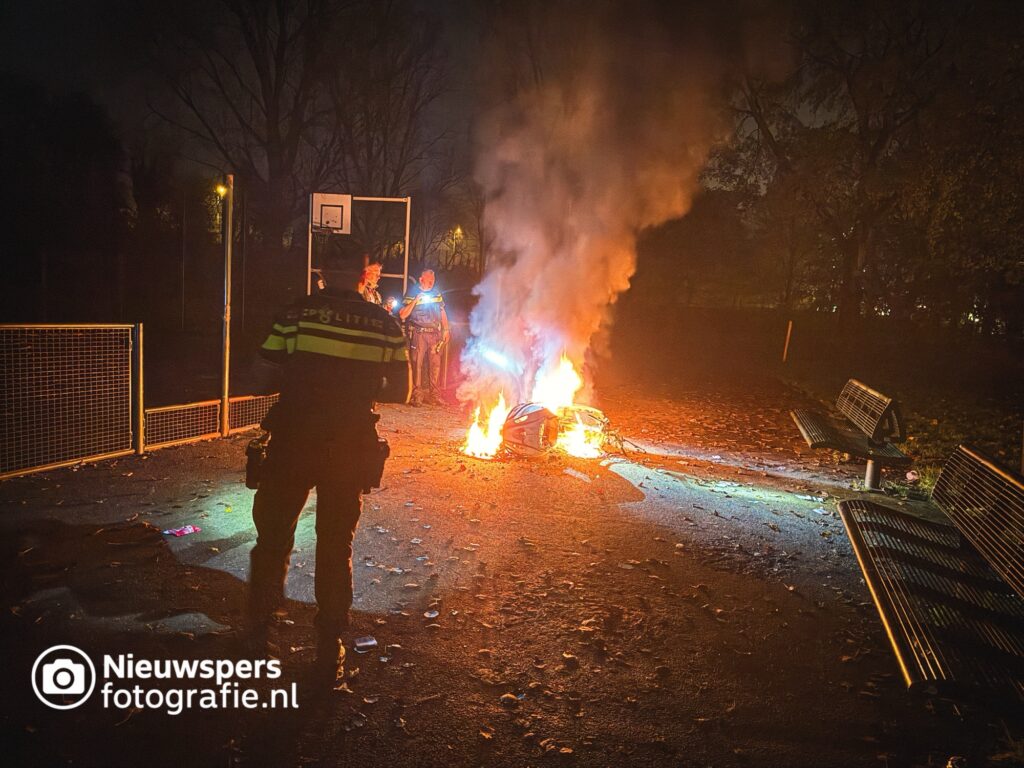 AMERSFOORT – Aan de Ariaweg in Amersfoort is zaterdagavond een scooter volledig uitgebrand. Het voertuig stond ter hoogte van het basketbalveld toen het rond 21.55 uur in brand vloog.